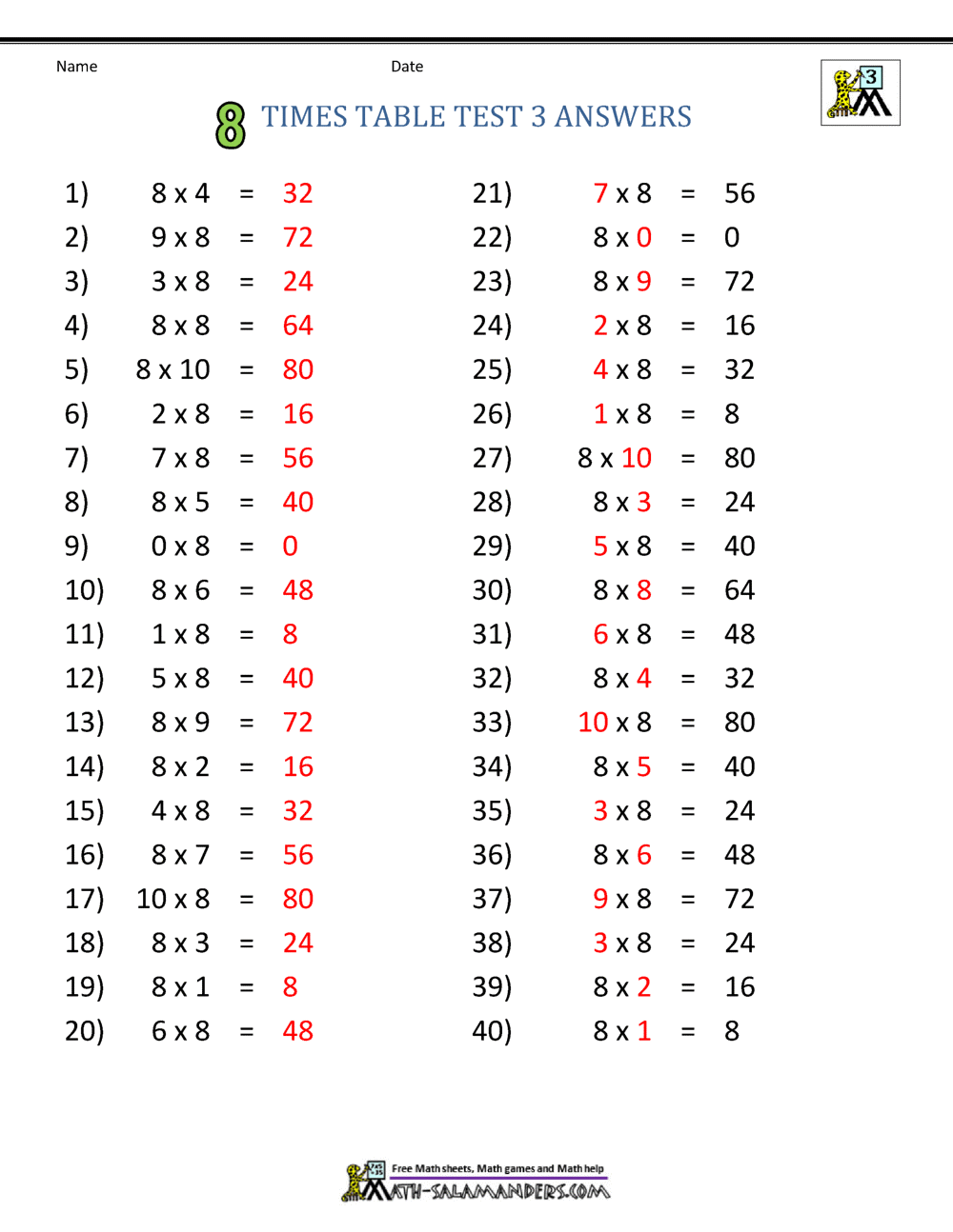 8 Times Table from ncalculators.com People buy with their emotions before their logic, which makes advertisements that play on feelings so effective. Learn more about the periodic table, including how it was developed and which elements have s. Print the two times tables fact target worksheet in pdf the target worksheets are made to look like a dartboard. Multiplication worksheets can help students improve their skills. We earn a commission for products purchased through some links in this article. For a beautiful table every time, try these 8 simple steps. Excel is microsoft's spreadsheet program, and part of its line of office products. A useful feature of excel is its ability to cre.